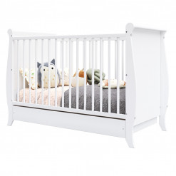 Le lit bébé blanc offre une option élégante et moderne qui s’harmonise avec tous les styles de décoration intérieure. Il apporte une touche de lumière et de pureté à la chambre de votre enfant. Il existe également d'autres coloris disponibles dans la boutique : pin, anthracite.