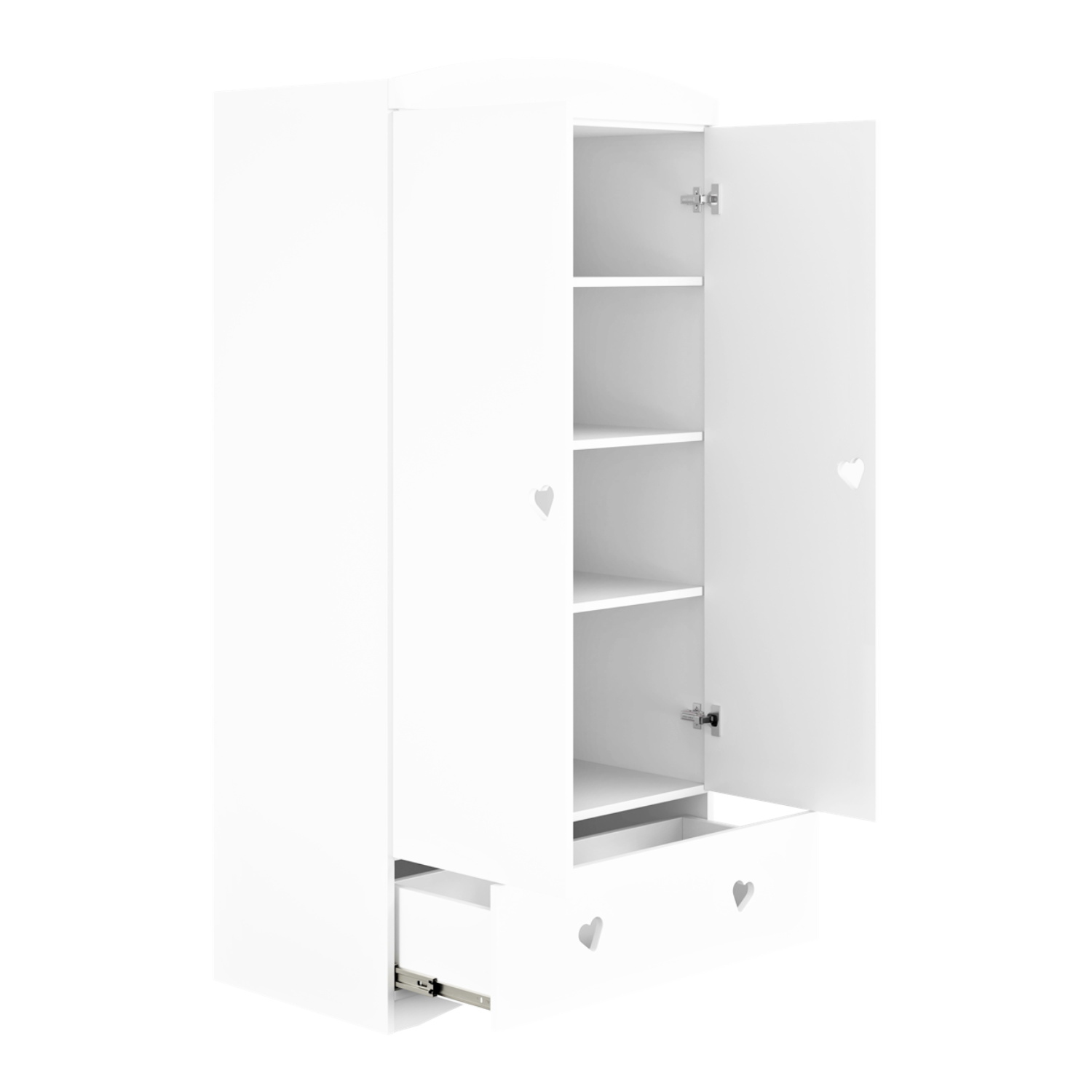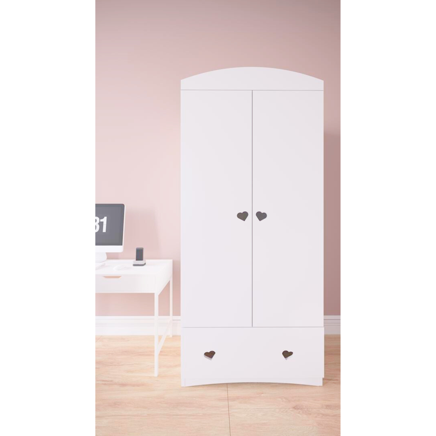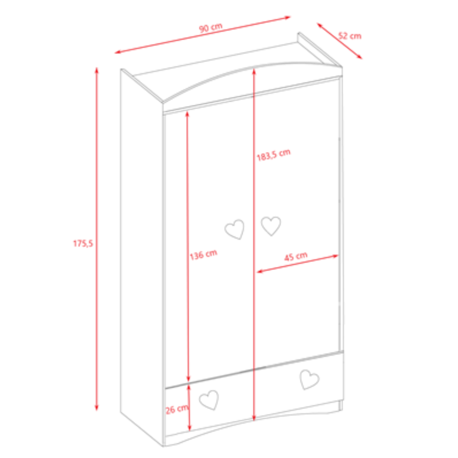 Cette jolie armoire au style original par la présences de jolies poignées en forme de cœur, trouvera facilement sa place dans tous les styles de chambre. Rangez et organisez les affaires de votre enfant en toute simplicité.