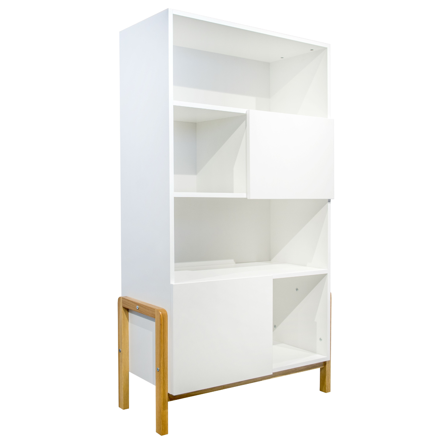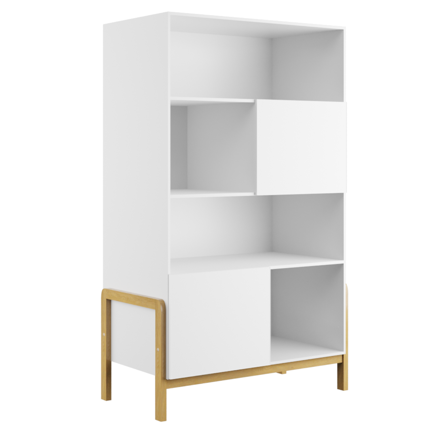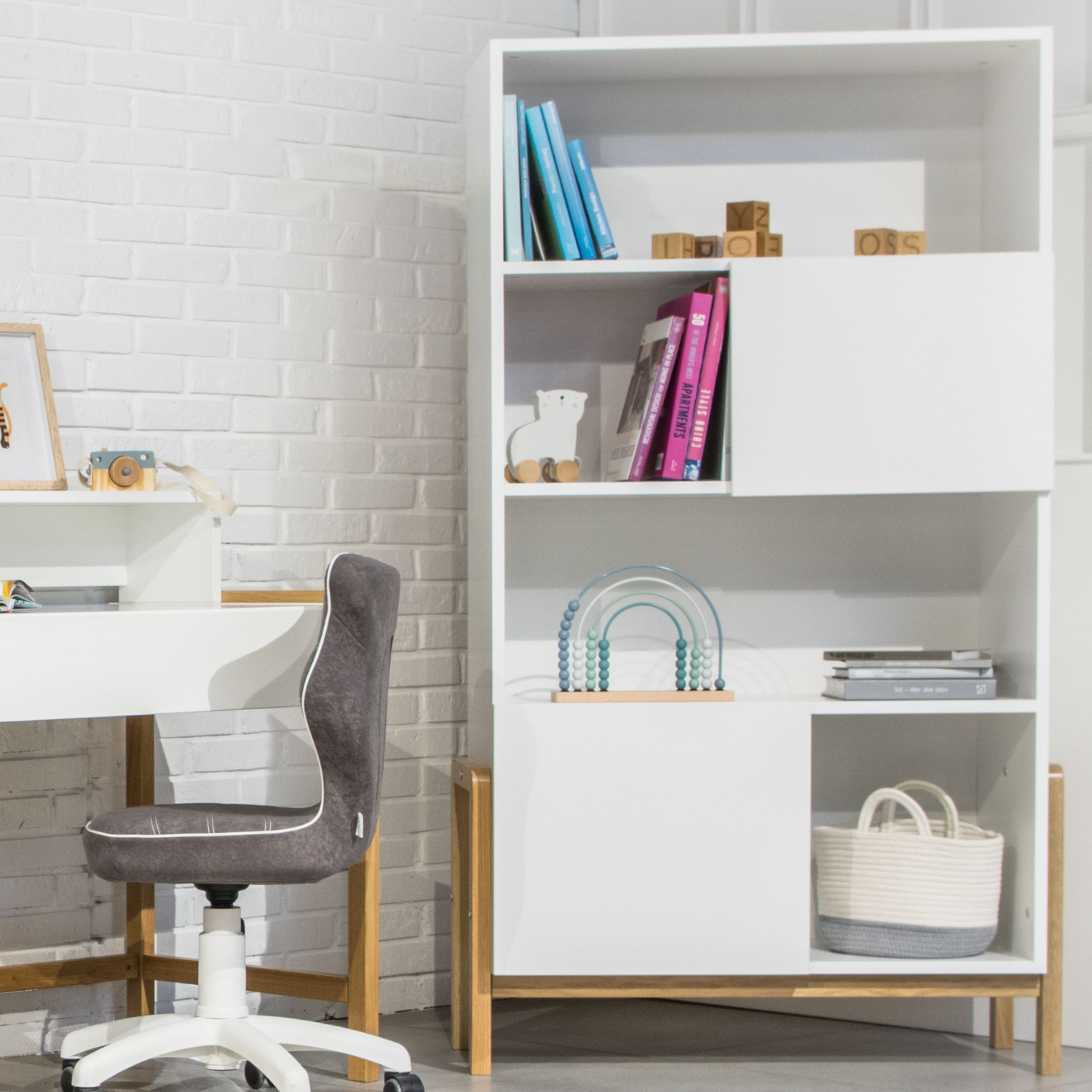 Cette jolie bibliothèque au style scandinave trouvera facilement sa place dans tous les styles d’intérieurs. Rangez, organisez, décorez la chambre de votre enfant en toute simplicité. Les 6 étagères de la bibliothèque ont été pensées pour maximiser au mieux sa capacité de rangement. La bibliothèque dispose de deux armoires fermées. Les différentes tailles des étagères permettent de nombreuses combinaisons d’agencement en fonction de vos besoins.