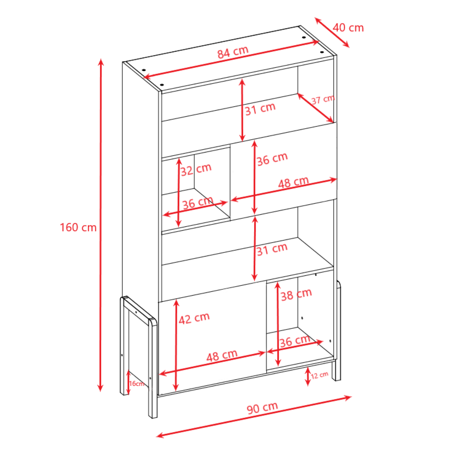 Dimensions : 160 x 90 x 40 cm (Hauteur x Largeur x Profondeur).