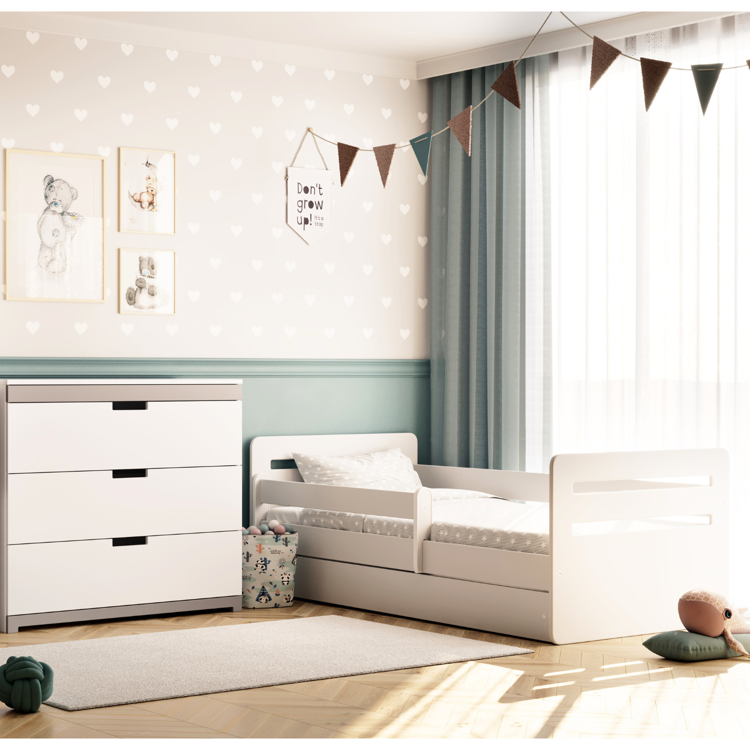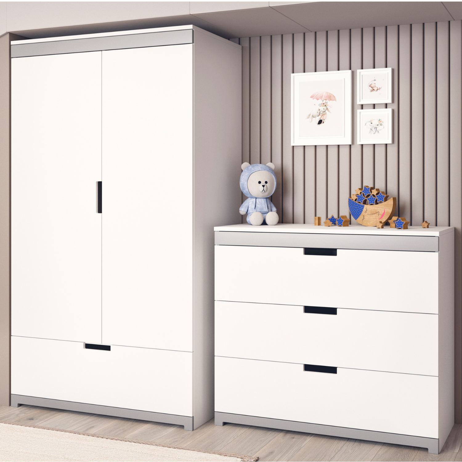 Cette jolie commode au style épuré trouvera facilement sa place dans tous les styles de chambres. Rangez et organisez vos affaires ou celle de votre enfant en toute simplicité. Les trois spacieux tiroirs de la commode sont réglables et disposent d’un système de fermeture silencieux, idéal pour ne pas réveiller votre enfant pendant son sommeil.