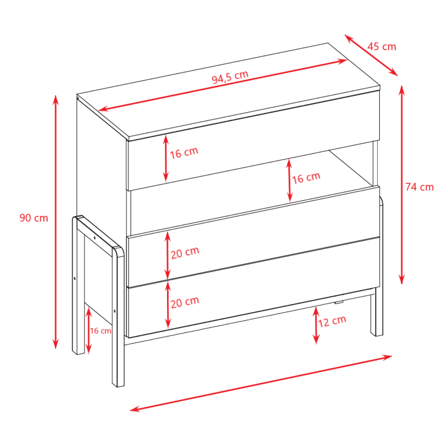 Entretien : Nettoyer la commode à l’eau avec un chiffon doux.