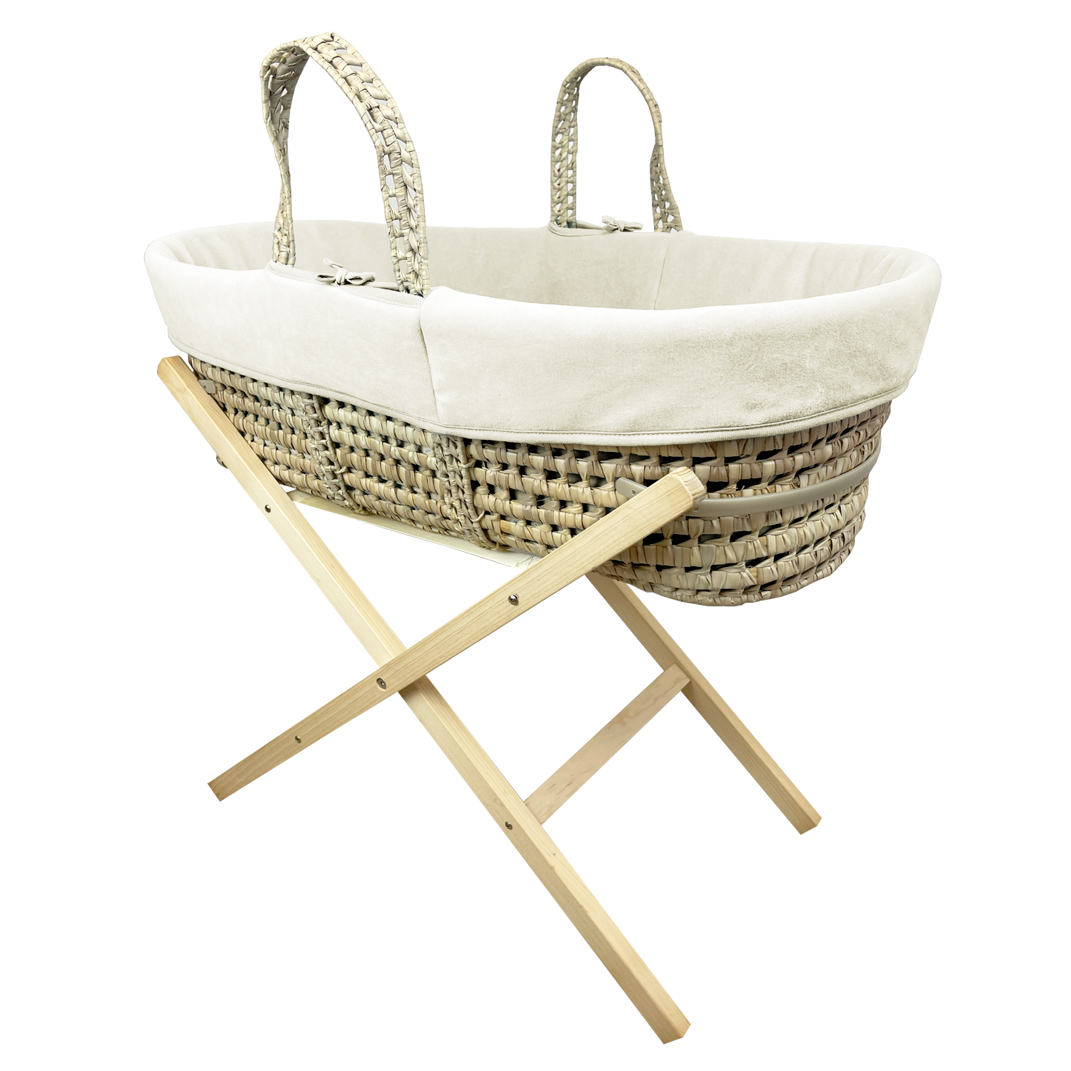 L’habillage du couffin inclus est en coton 100% biologique au doux toucher velours (tissu labelisé GOTS et Oeko-Tex).