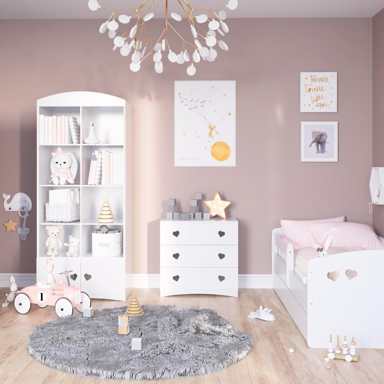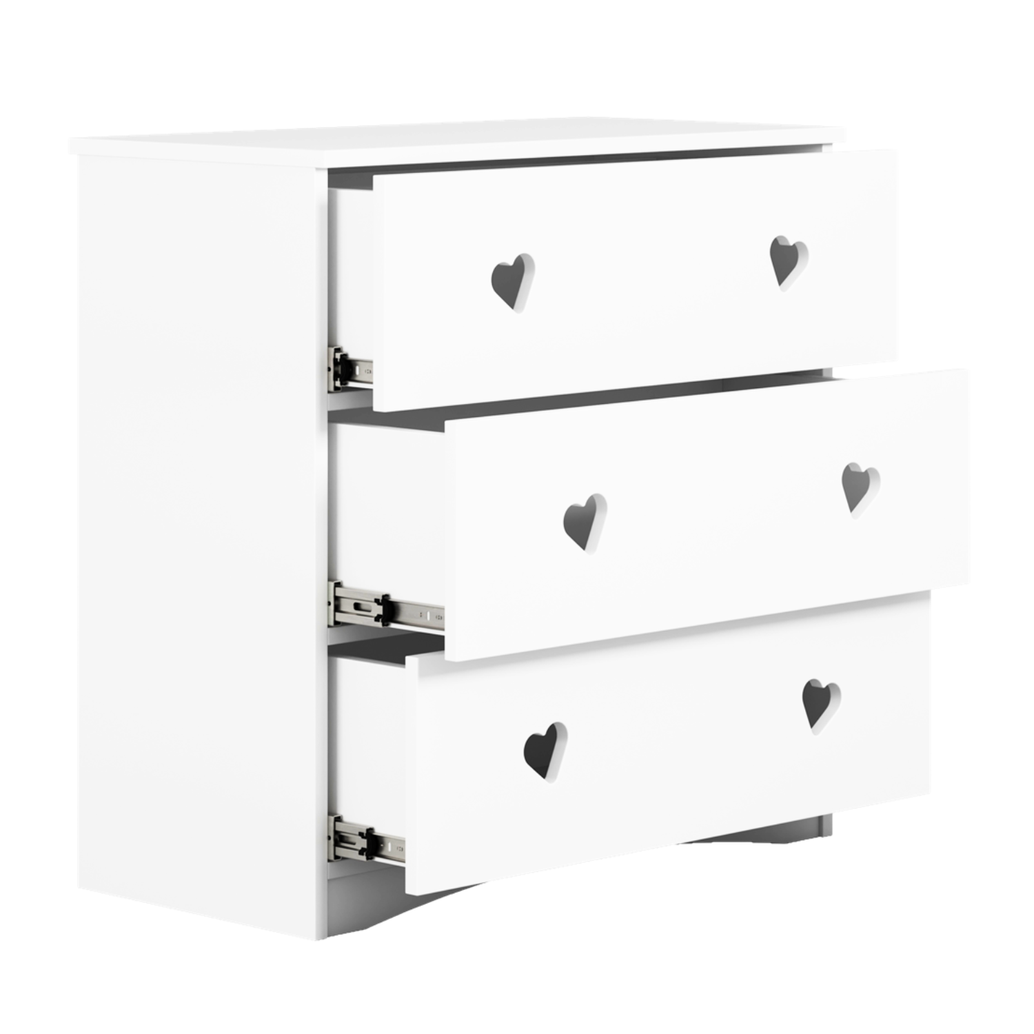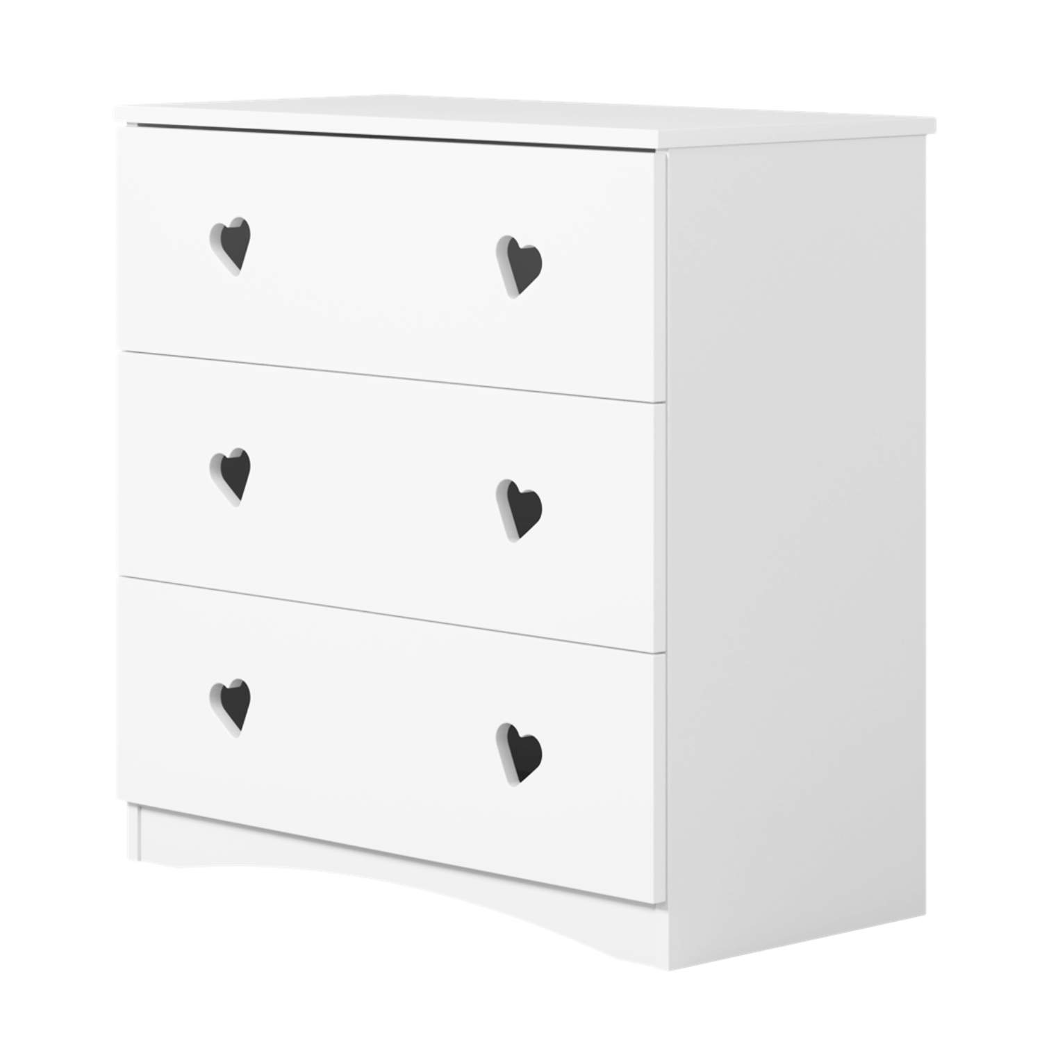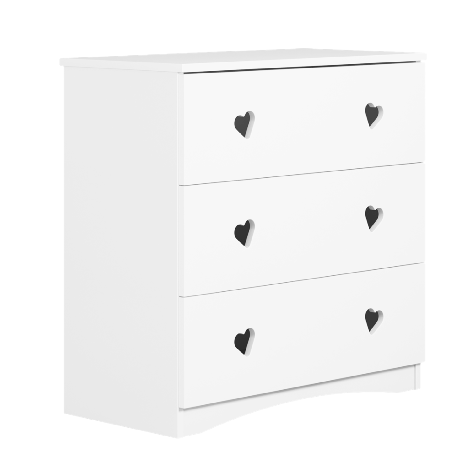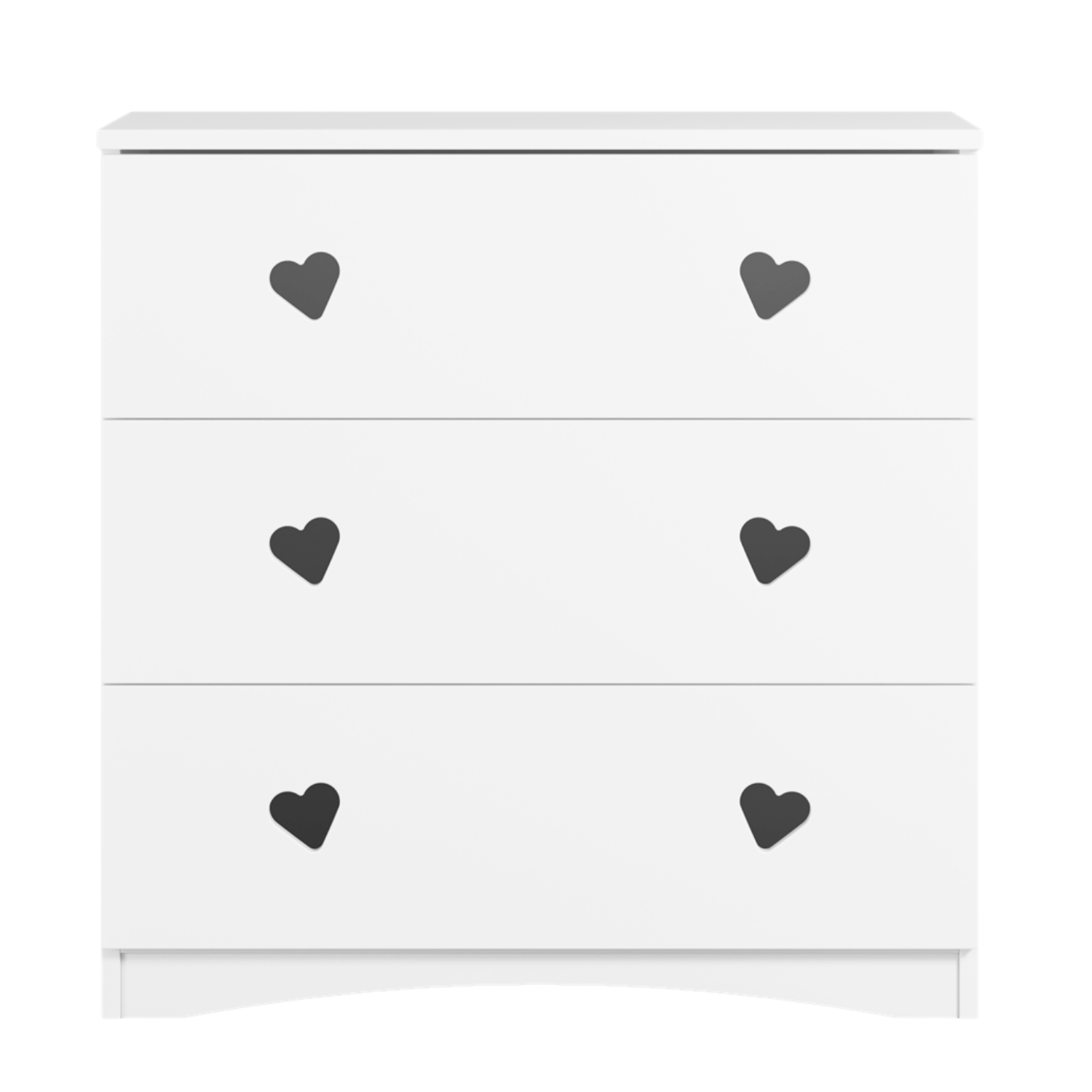 Cette jolie commode au style original, par la présence de charmantes poignées découpées en forme de cœur, trouvera forcément sa place dans la chambre de votre enfant. Rangez et organisez les affaires de de votre enfant en toute simplicité. Les trois tiroirs de la commode sont spacieux et disposent d’un système de fermeture silencieux.