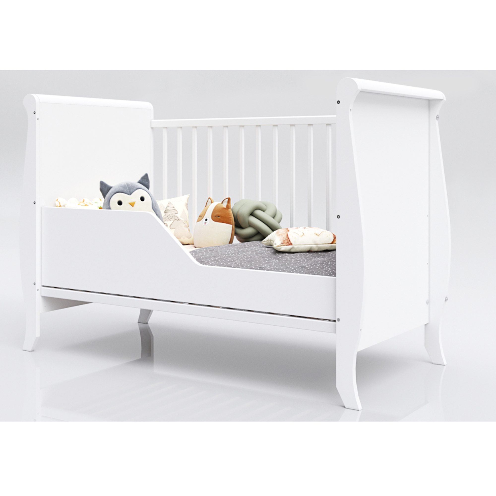 Le lit Alba 120×60 cm accompagne les premiers mois de votre bébé avec praticité, sécurité et confort. Grâce à ses barreaux amovibles, il favorise une transition douce vers l’autonomie, tout en conservant un cadre rassurant et protecteur.