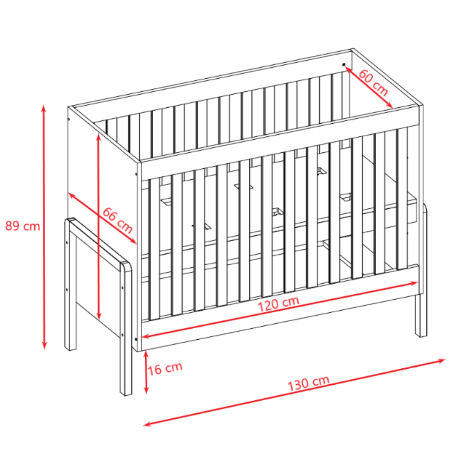 Surface de couchage : 120 x 60 cm.