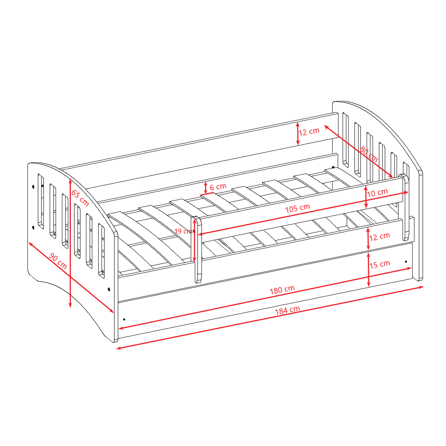 Lit Enfant à barrière 180×80 cm avec tiroir – CLASSIC