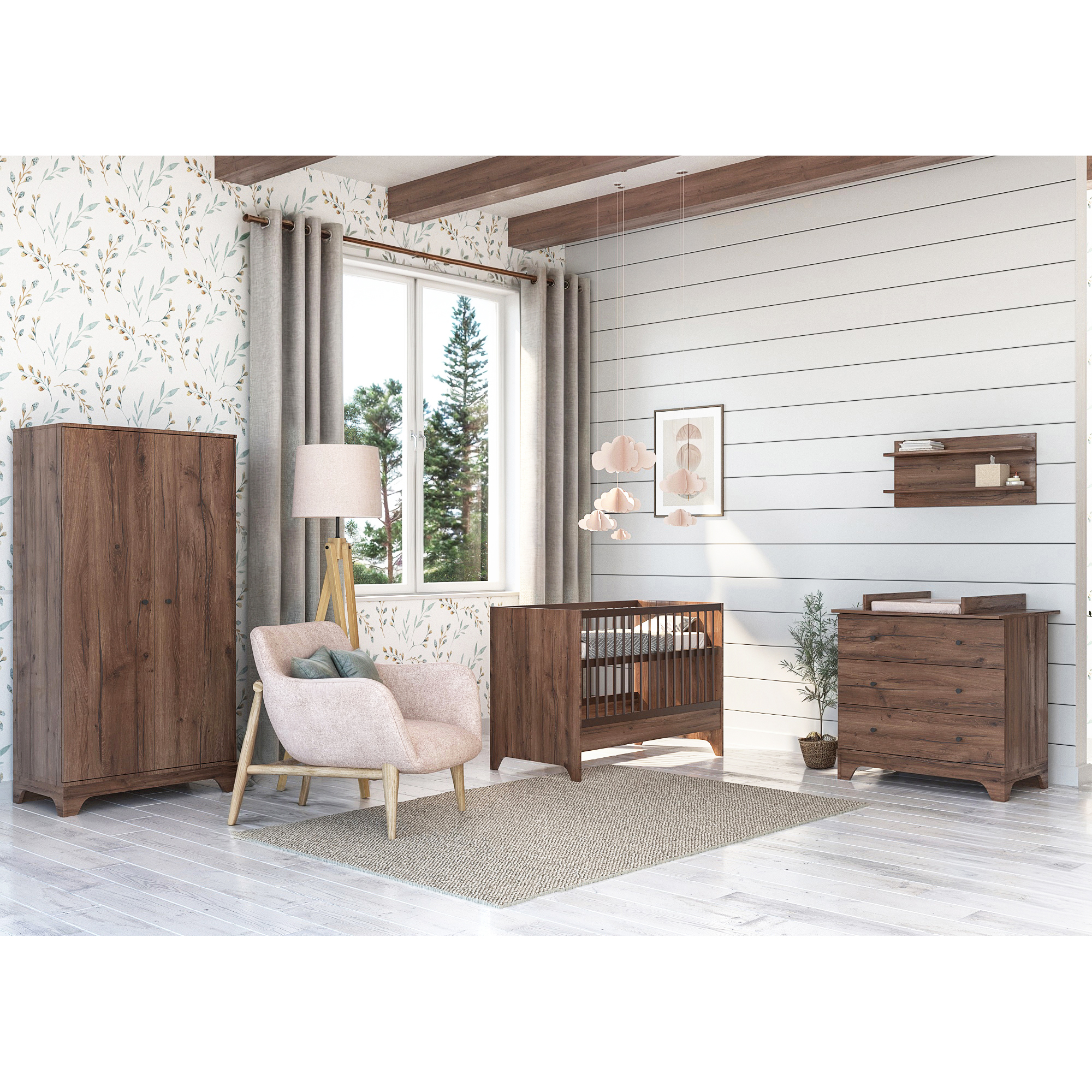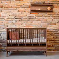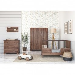 Le design noyer chaleureux et les lignes épurées s’intègrent facilement dans une chambre douce et soignée. Robuste et stable, ce lit a été conçu pour durer.