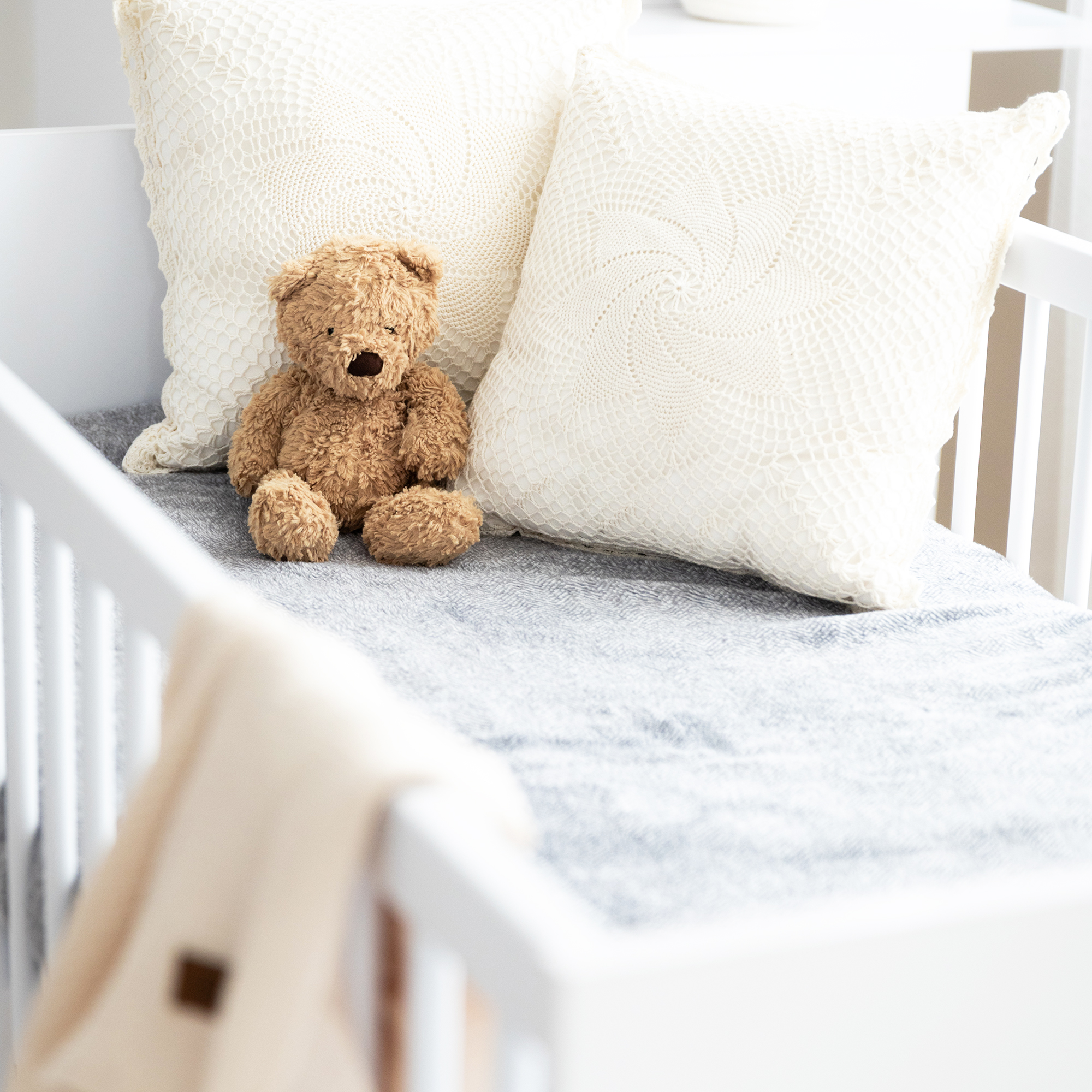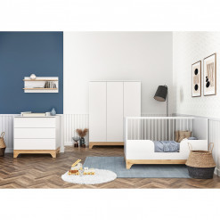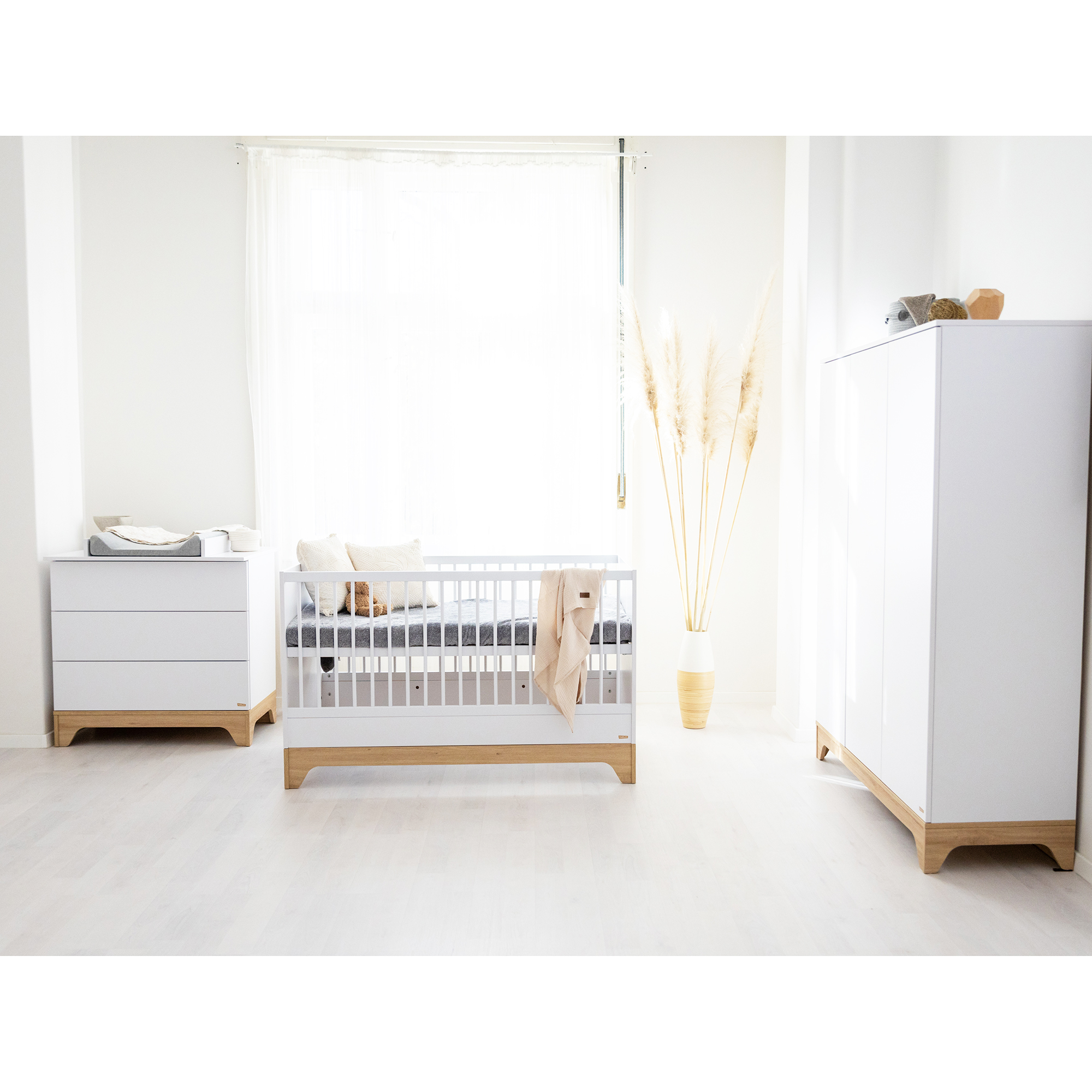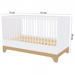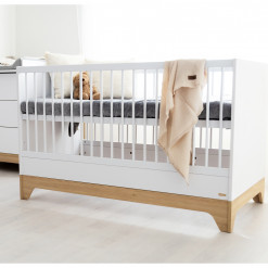 Le sommier se règle sur trois hauteurs pour faciliter le quotidien. En position haute, vous prenez bébé sans effort. En position basse, il dort en toute sécurité lorsqu’il commence à se redresser. Ce lit suit son rythme, tout en vous simplifiant la vie.