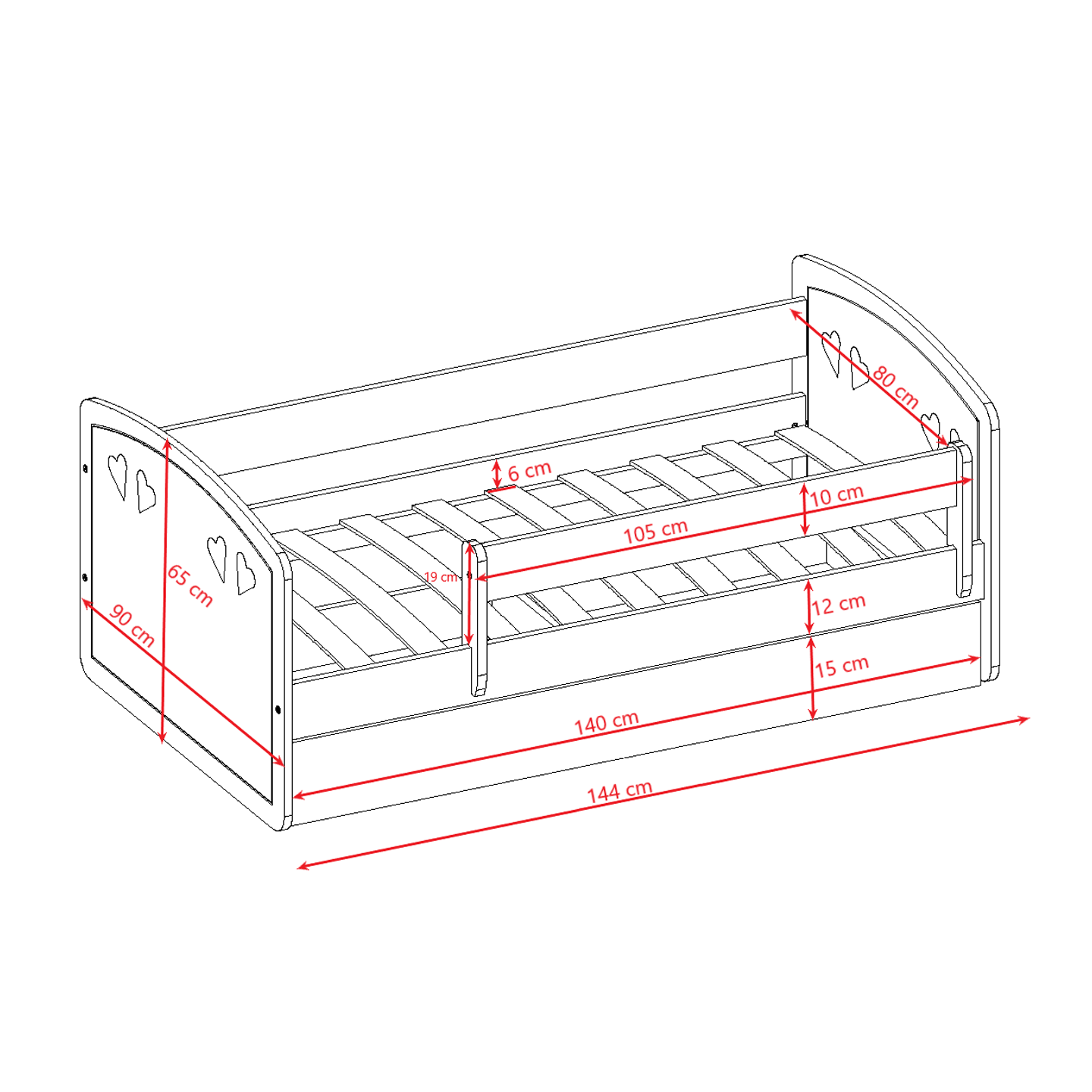 Avec son joli design, le lit pour enfant JULIA et ses jolis petits cœurs trouve facilement sa place dans tous les styles de chambre.