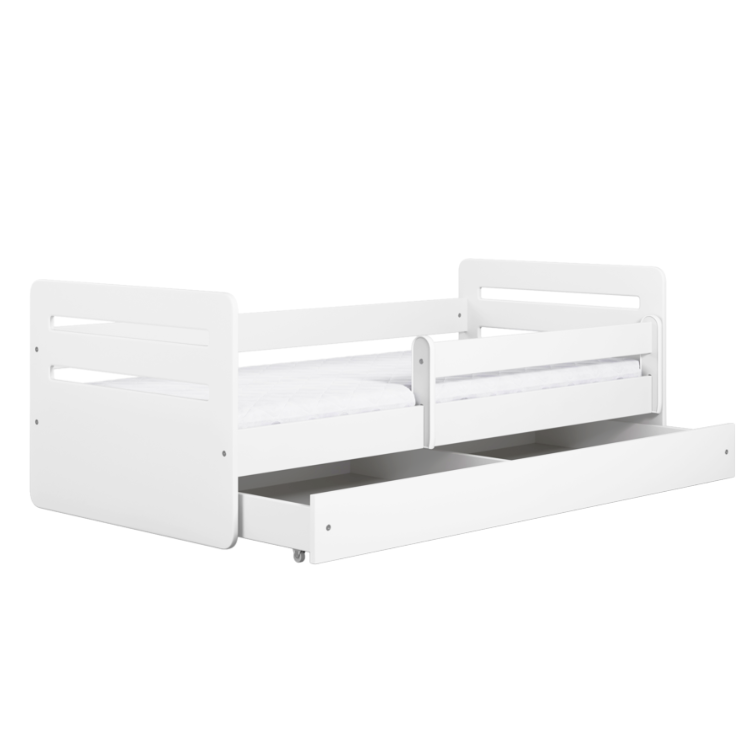 Le lit Tomi dispose en option d’un tiroir à roulette avec deux compartiments spacieux pour y ranger du linge de lit ou des jouets.