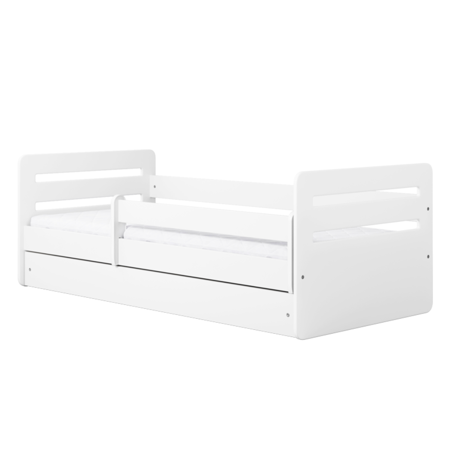 Pour un passage en douceur vers un grand lit et éviter les chutes nocturnes, le lit Tomi dispose d’une barrière amovible qui se retire facilement lorsque votre enfant aura grandi. Pour un confort optimal, le cadre du lit est composé de lattes en bouleau de 5,5 cm.